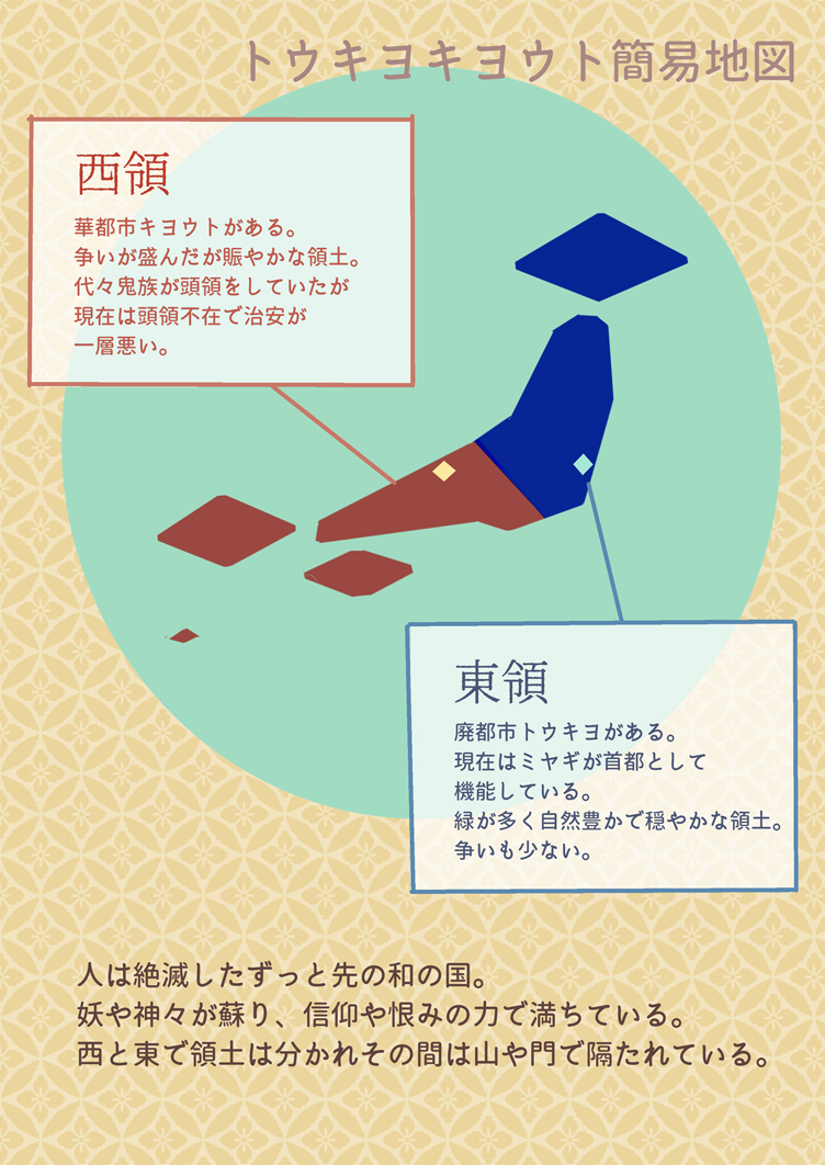 女にしか見えない男の人妖。お札の量産と飲酒が趣味で人をこき使うのが得意。過去に鬼一族と争っていた。